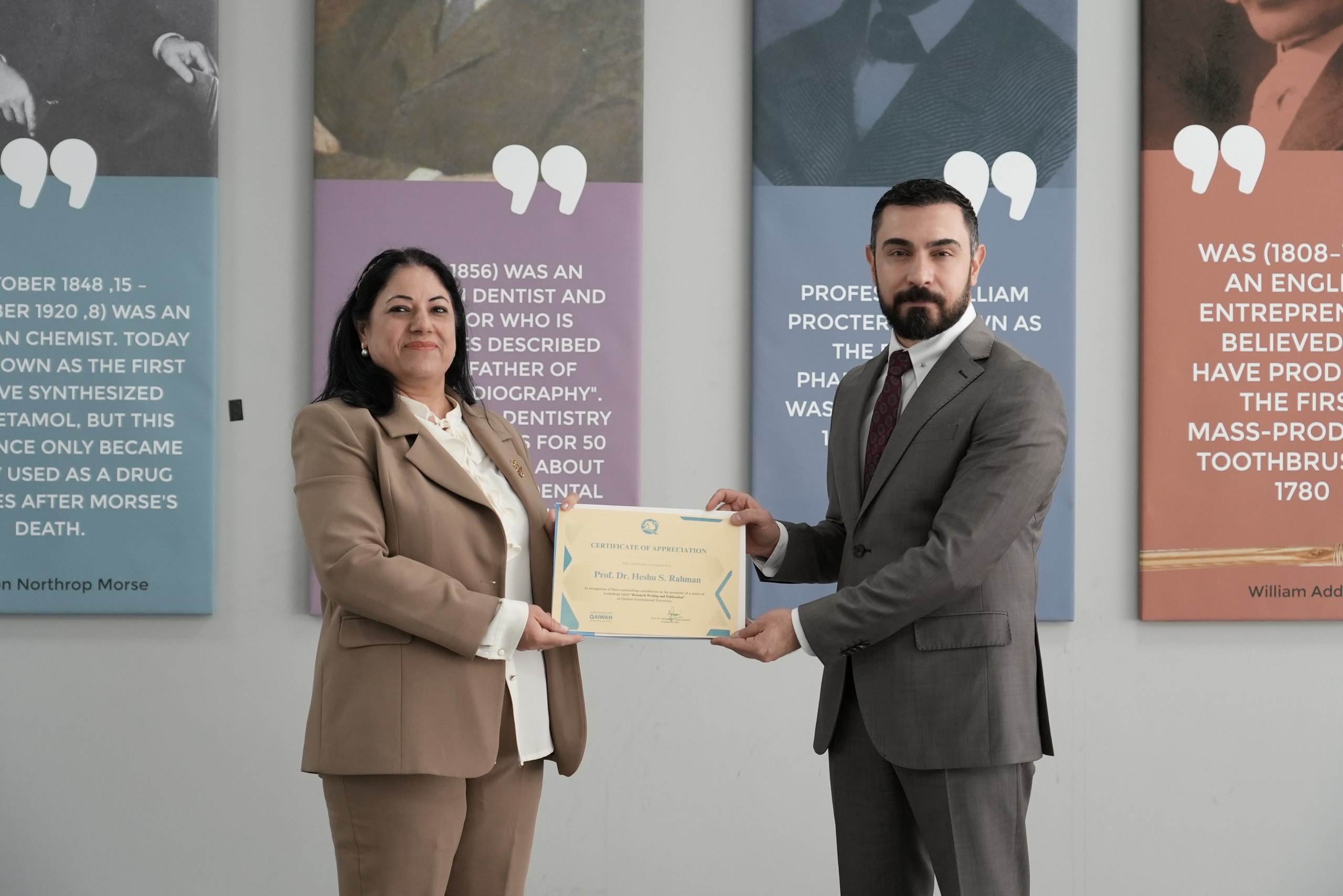 The Faculty of Pharmacy at Qaiwan International University (QIU) successfully hosted a series of four workshops delivered by Professor Dr. Heshu S. Rahman, one of the country’s leading researchers.