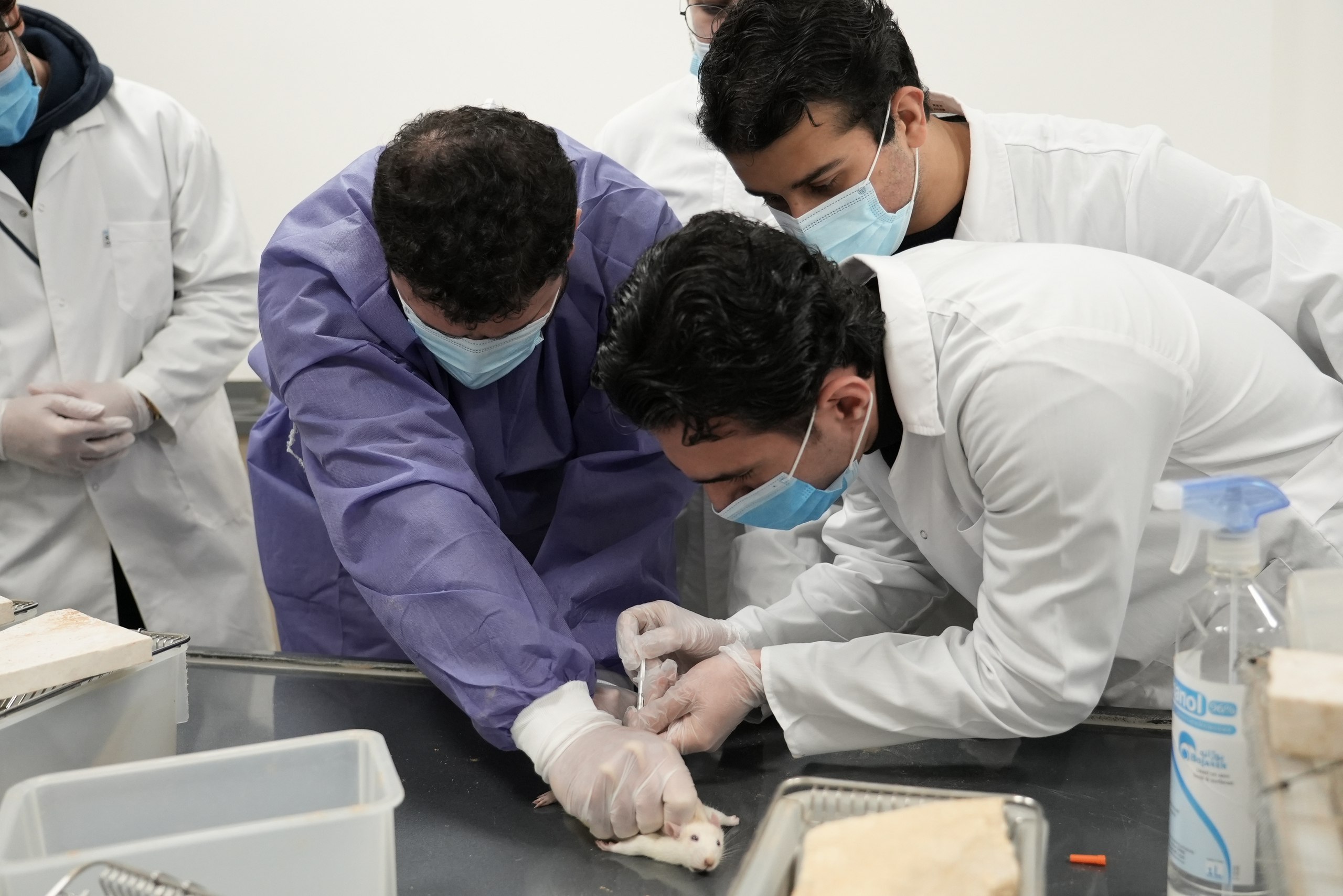 Today, at the Pharmacology Laboratory – Faculty of Pharmacy, a practical session on Animal Handling and Routes of Drug Administration was conducted under the supervision of Dr. Ranw, Dr. Bawan, and Dr. Aryas.